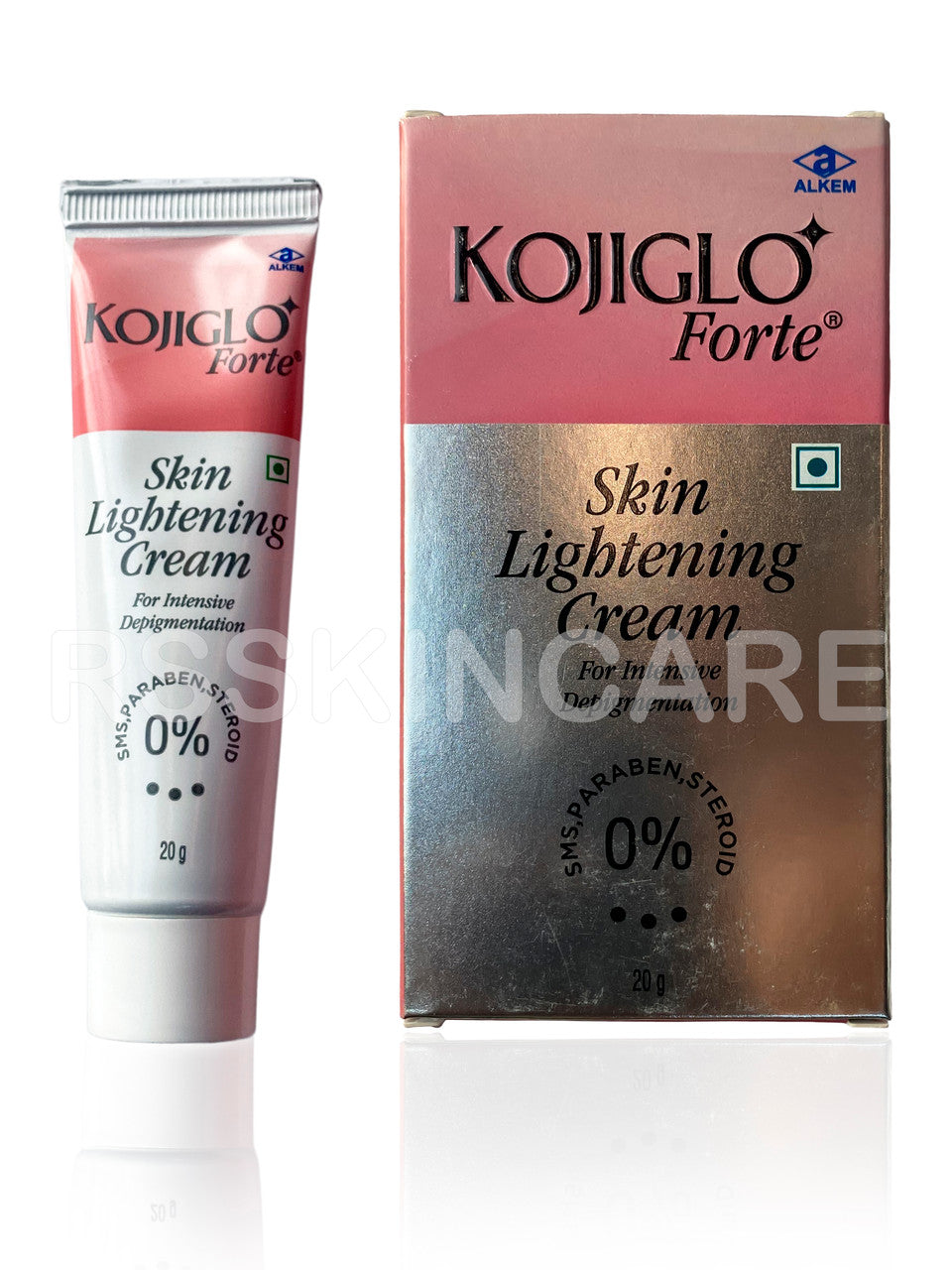 Kojiglo Forte Cream reduces hyperpigmentation, blemishes, and signs of aging. It does this by blocking the formation of tyrosinase which impacts melanin production, thus having a lightening effect on the skin. It also contains pine bark extract and niacinamide, which reduce skin wrinkles and minimize the appearance of the most common signs of aging on the skin.